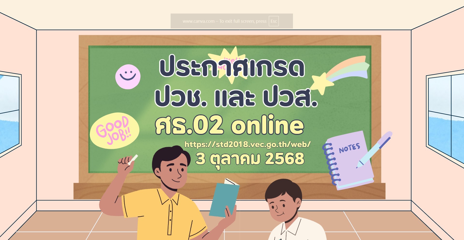 - ประกาศเกรด ระดับชั้น ปวช. และ ปวส. ภาคเรียนที่ 1/2568 ผ่านระบบ ศธ.02online ( 02 ต.ค. 68 )