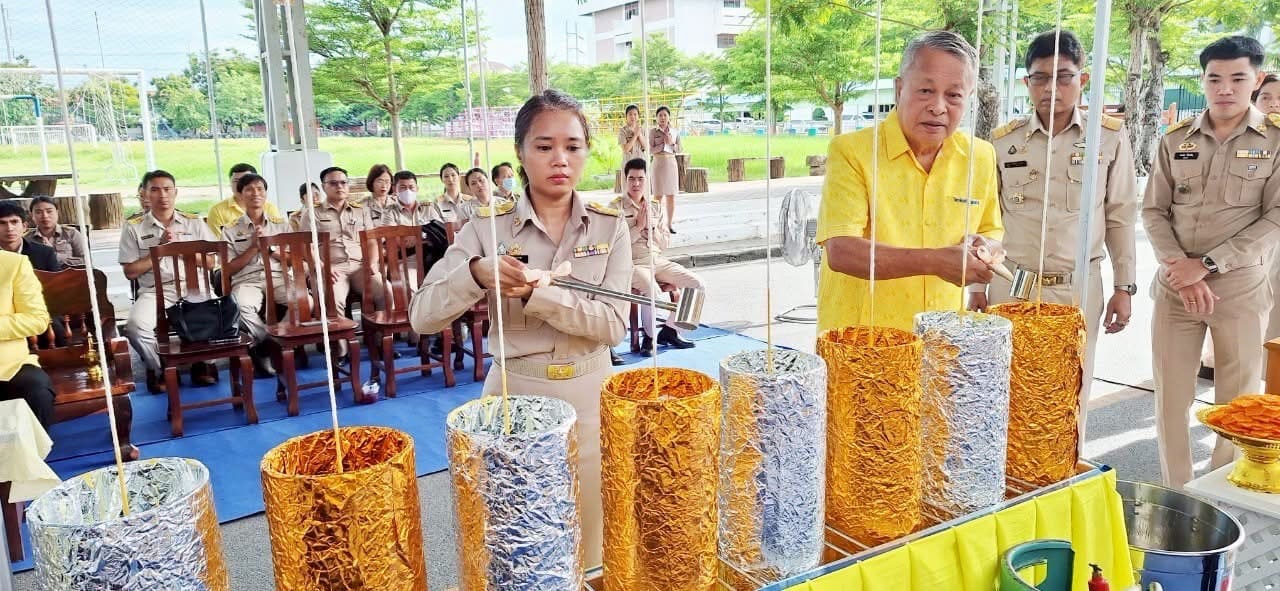 ครูและบุคลากรทางการศึกษา นักเรียน นักศึกษา ร่วมพิธี หล่อเทียนจำนำพรรษา ประจำปี 2568 ณ บริเวณหน้าอาคาร 1 วิทยาลัยเทคนิคสมุทรสงคราม