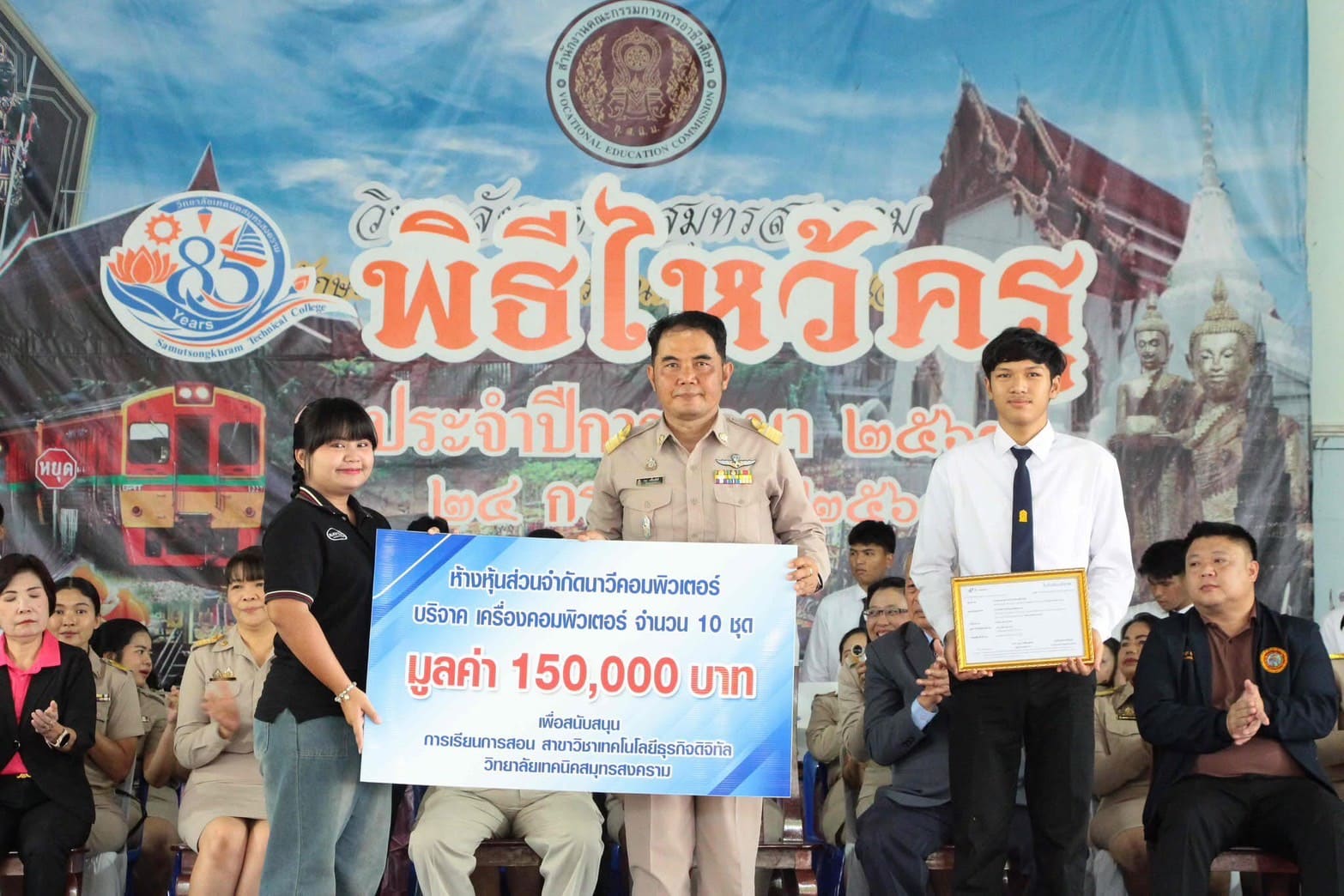 เกลื่อนพันธ์ ผู้อำนวยการวิทยาลัยเทคนิคสมุทรสงคราม พร้อมด้วยคณะผู้บริหาร