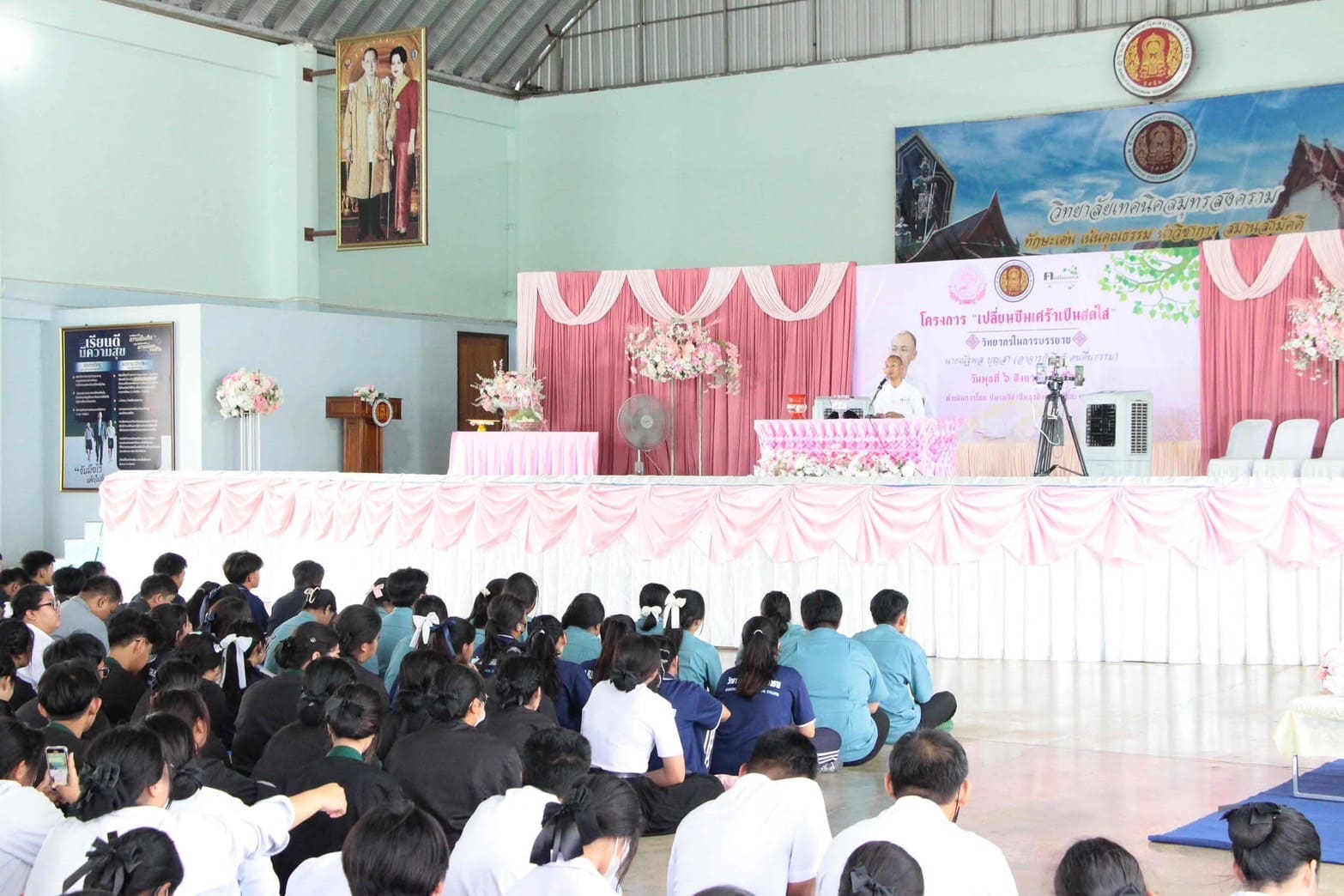 วันที่ 7 สิงหาคม 2568 นายอรุณ เกลื่อนพันธ์ ผู้อำนวยการวิทยาลัยเทคนิคสมุทรสงคราม มอบหมายให้นายสรยุทธ อุ่นใจ รองผู้อำนวยการฯ เป็นประธานกล่าวเปิดโครงการ "เปลี่ยนซึมเศร้าเป็นสดใส" พร้อมด้วยคณะครูและบุคลากรทางการศึกษา นักเรียน นักศึกษา เข้ารับฟังการบรรยาย โดยวิทยากร นายณัฐพล บุญสา (อาจารย์เบียร์ คนตื่นธรรม) ณ อาคารกิจกรรม วิทยาลัยเทคนิคสมุทรสงคราม ดำเนินการโดย ชมรมวิชาชีพธุรกิจดอกไม้และงานประดิษฐ์